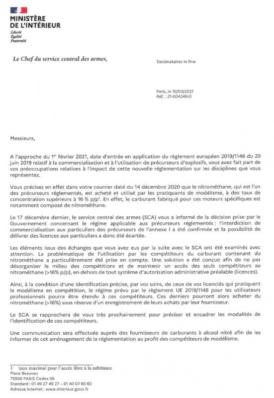 Voici l’information FFVRC sur le nitrométhane